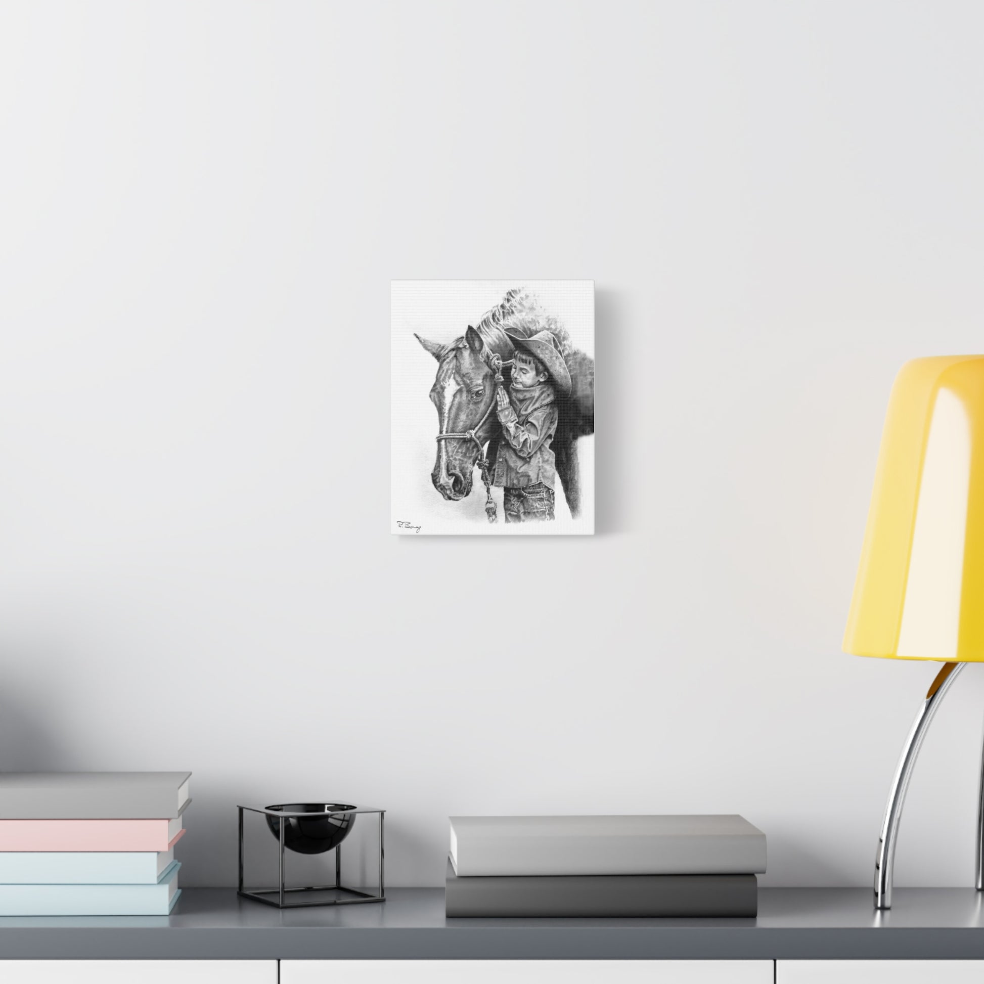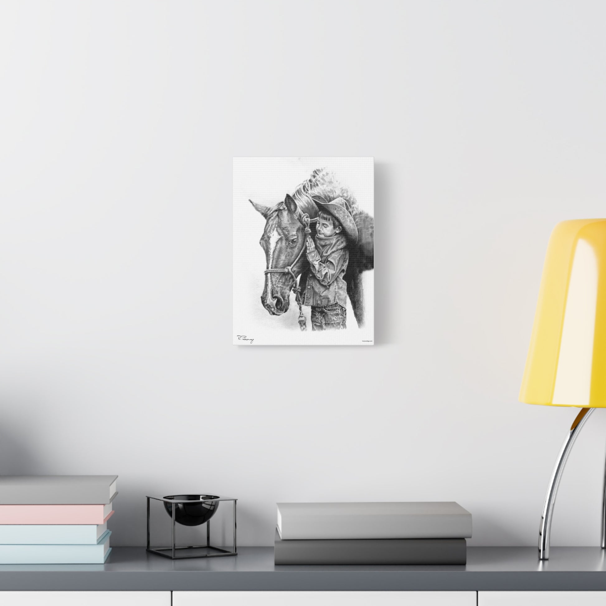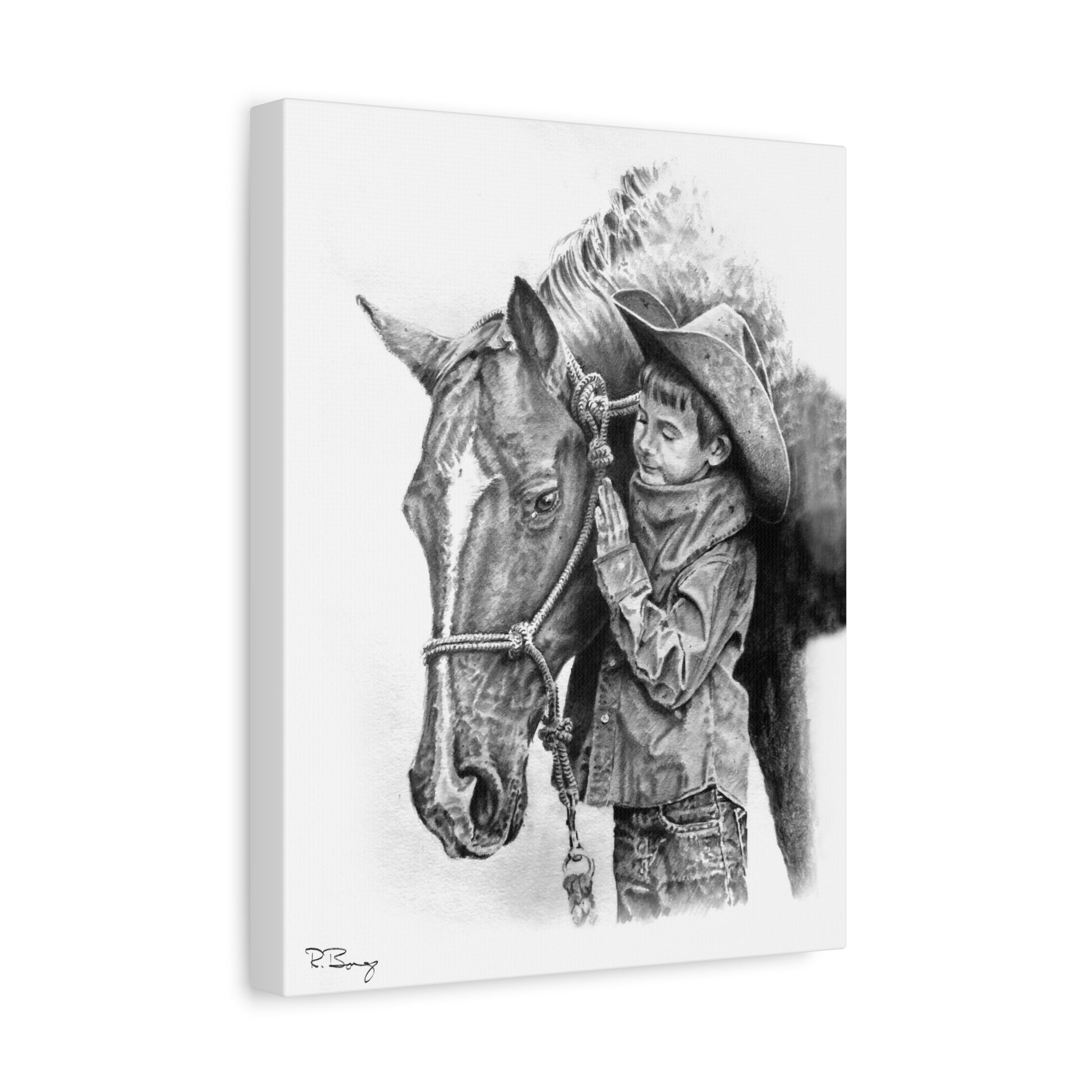 Bring a bit of Western heart to your home with this “Little Cowhand & His Trusty Steed” wall print. The sepia-toned artwork captures a timeless ranch moment — a young cowhand sharing a quiet whisper with his horse, the kind of bond shaped by early mornings, long shadows, and honest work.