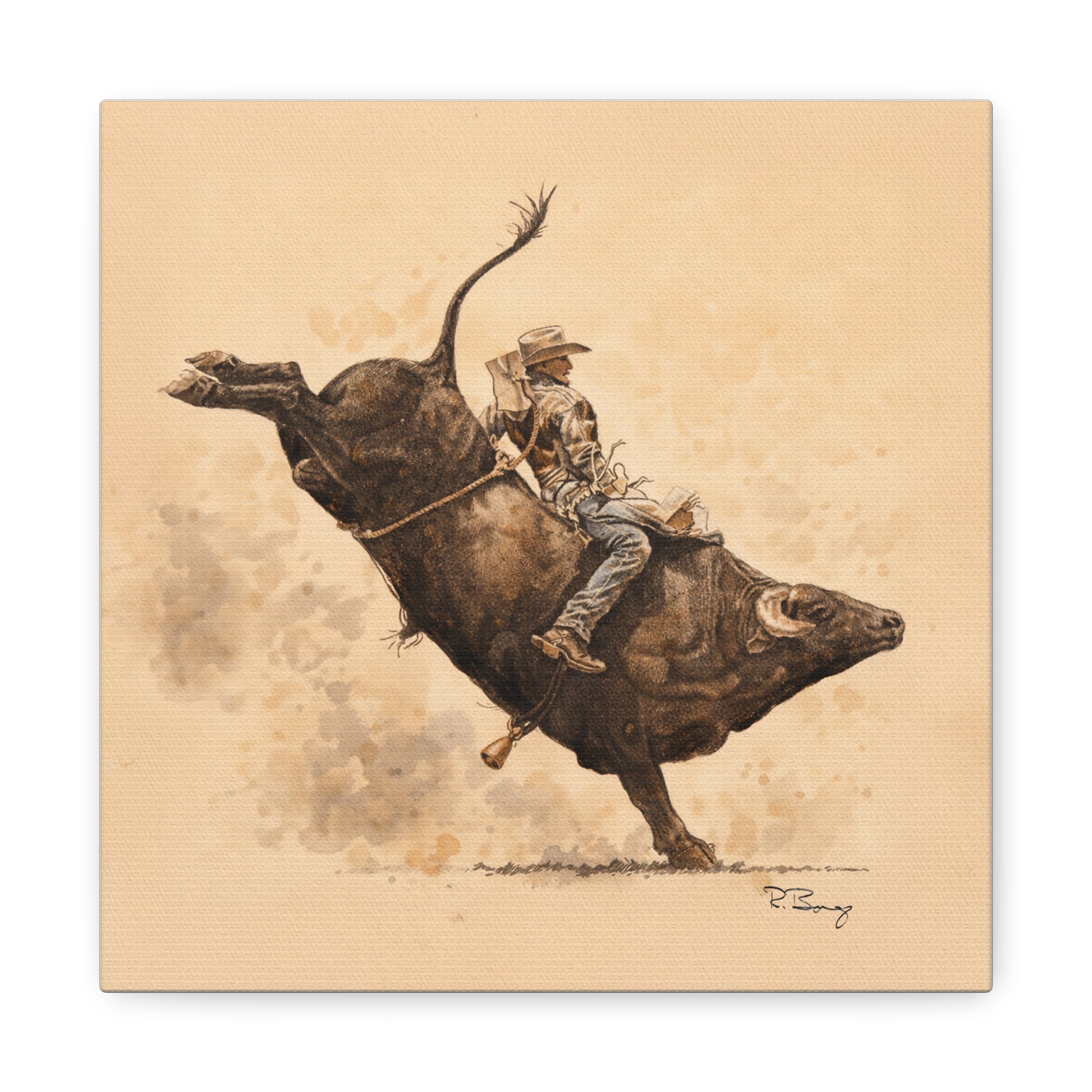 Bull Rider Rodeo Stretched Canvas Art — Watercolor & Pencil Western Wall Decor