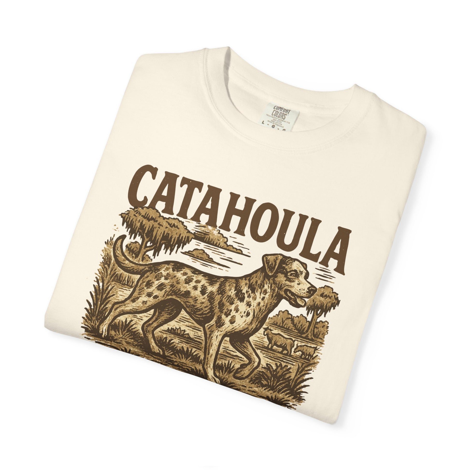 This design leans into that raw, Southern backbone with gritty hand-drawn linework, sepia textures, and classic ranch lettering. It’s a tribute to the state’s most iconic working dog — the True Louisiana Cowdog, known for courage, intelligence, and a heart that doesn’t back down from anything on four legs.