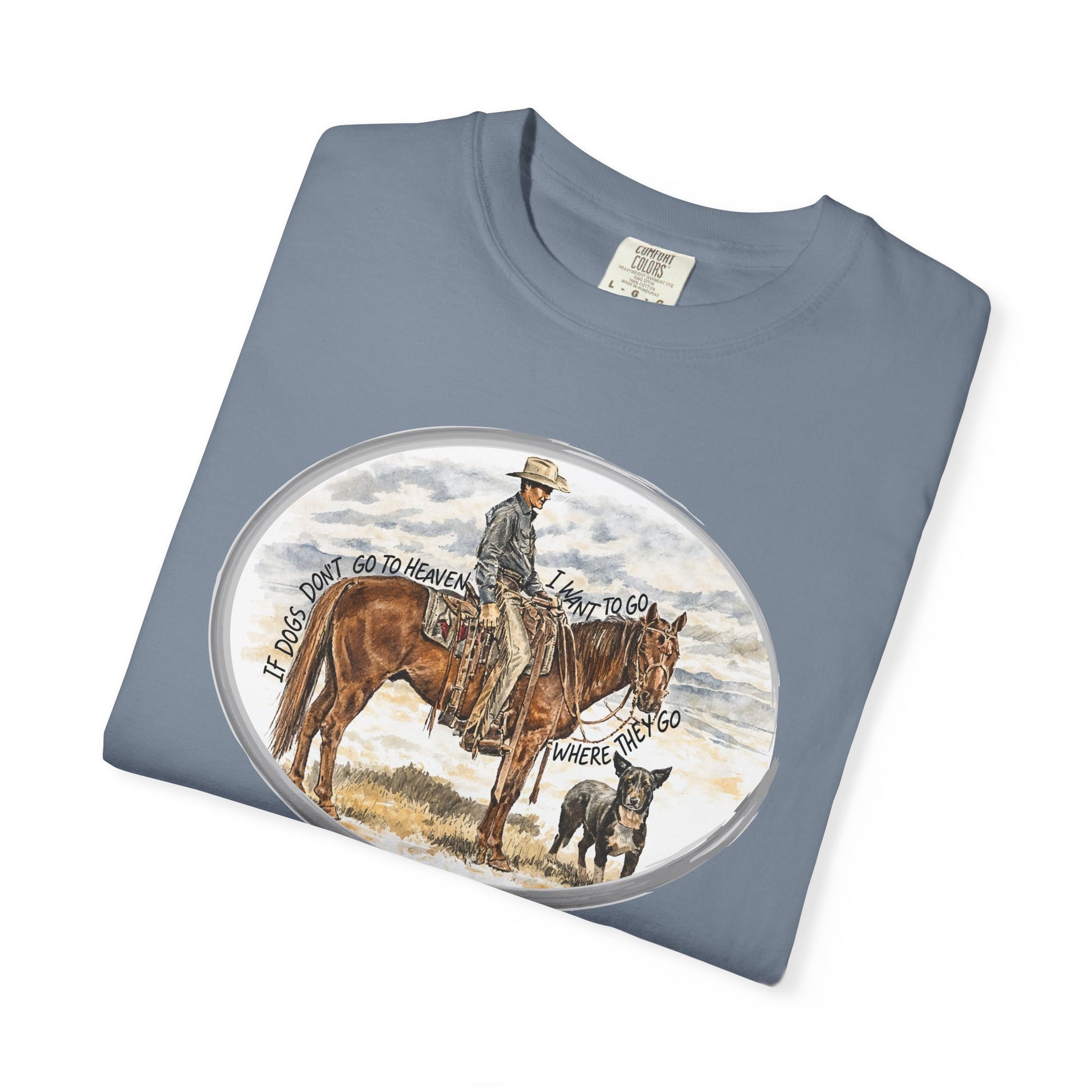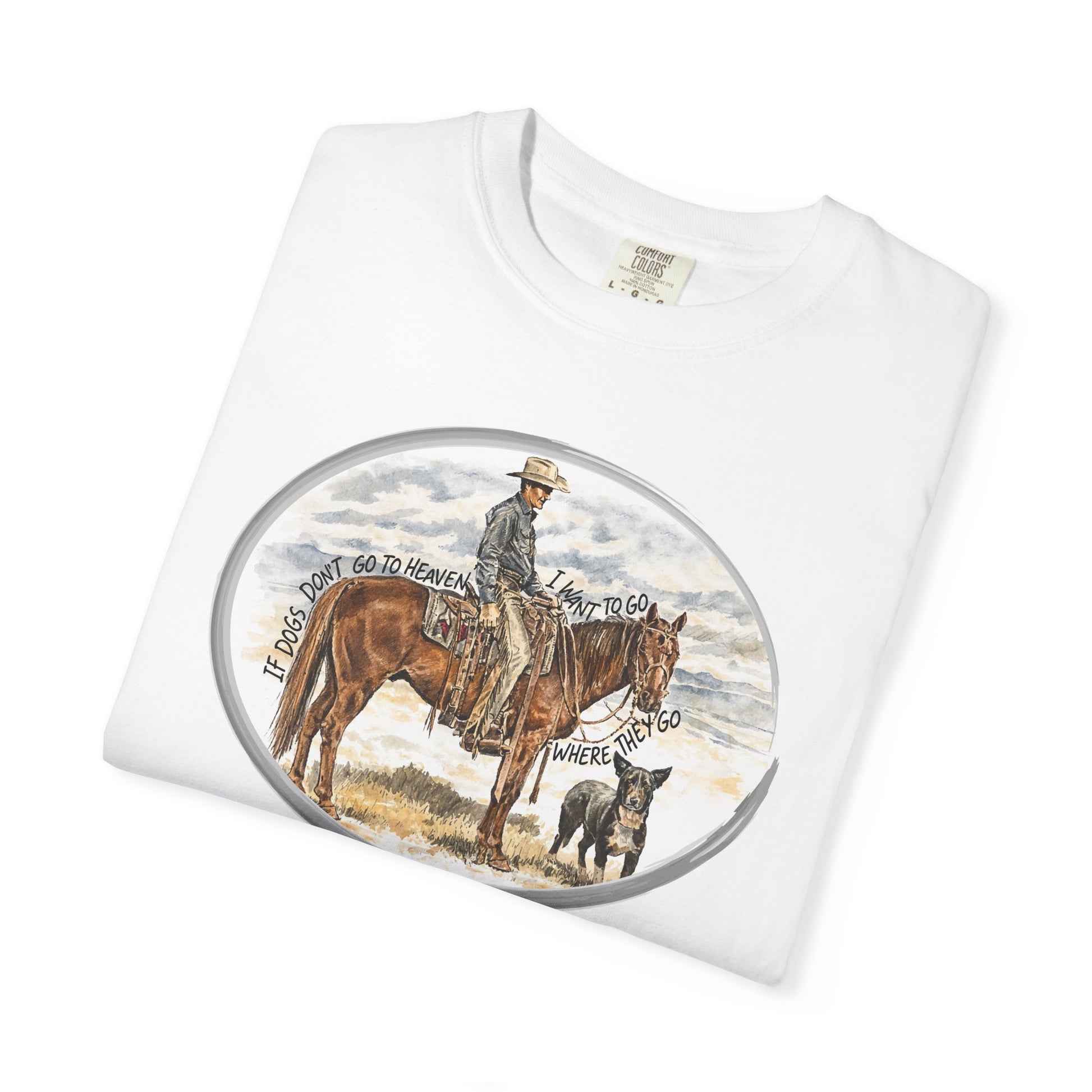 A cowboy, his horse, and a loyal dog—nothing extra, nothing missing. This design captures a simple truth known by anyone who’s ever trusted a good dog on a long road or an open range. Rendered in a classic Western illustration style and framed cleanly for the front of the shirt, it’s a piece that speaks softly but carries a lot of heart. Printed on a comfortable, everyday tee that wears easy whether you’re working, wandering, or just wishing you were.
