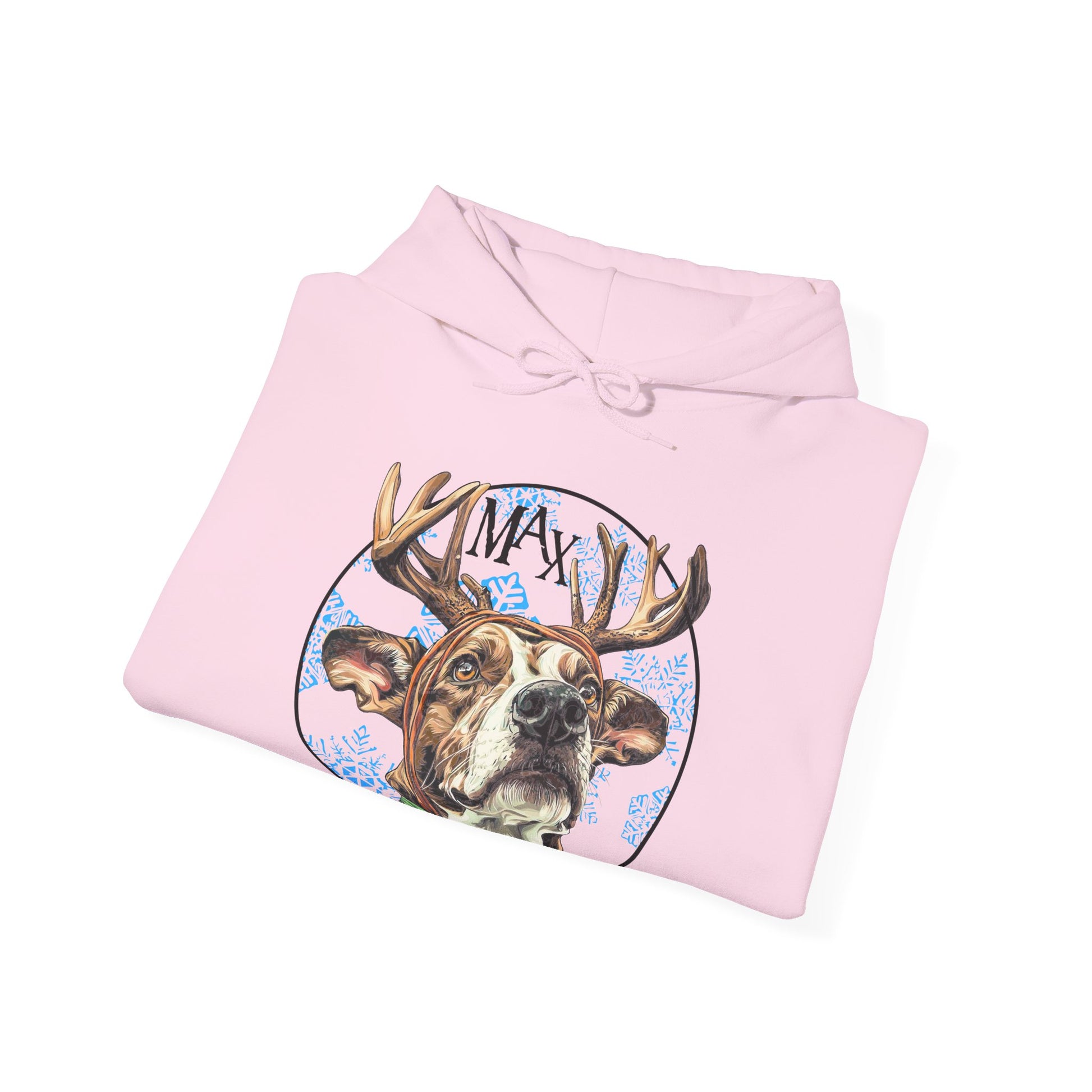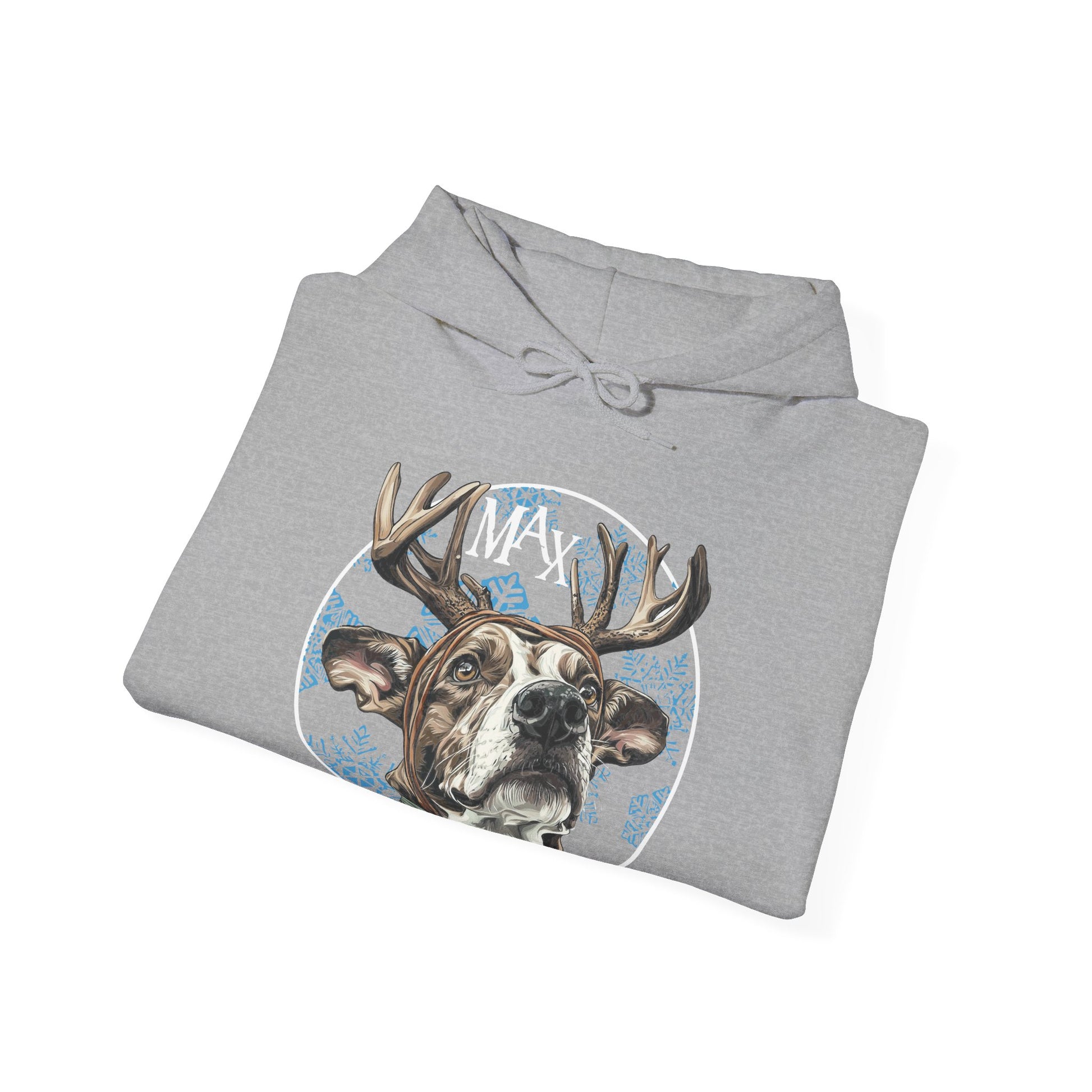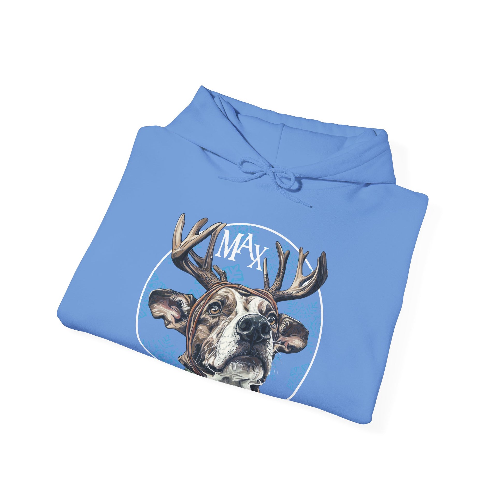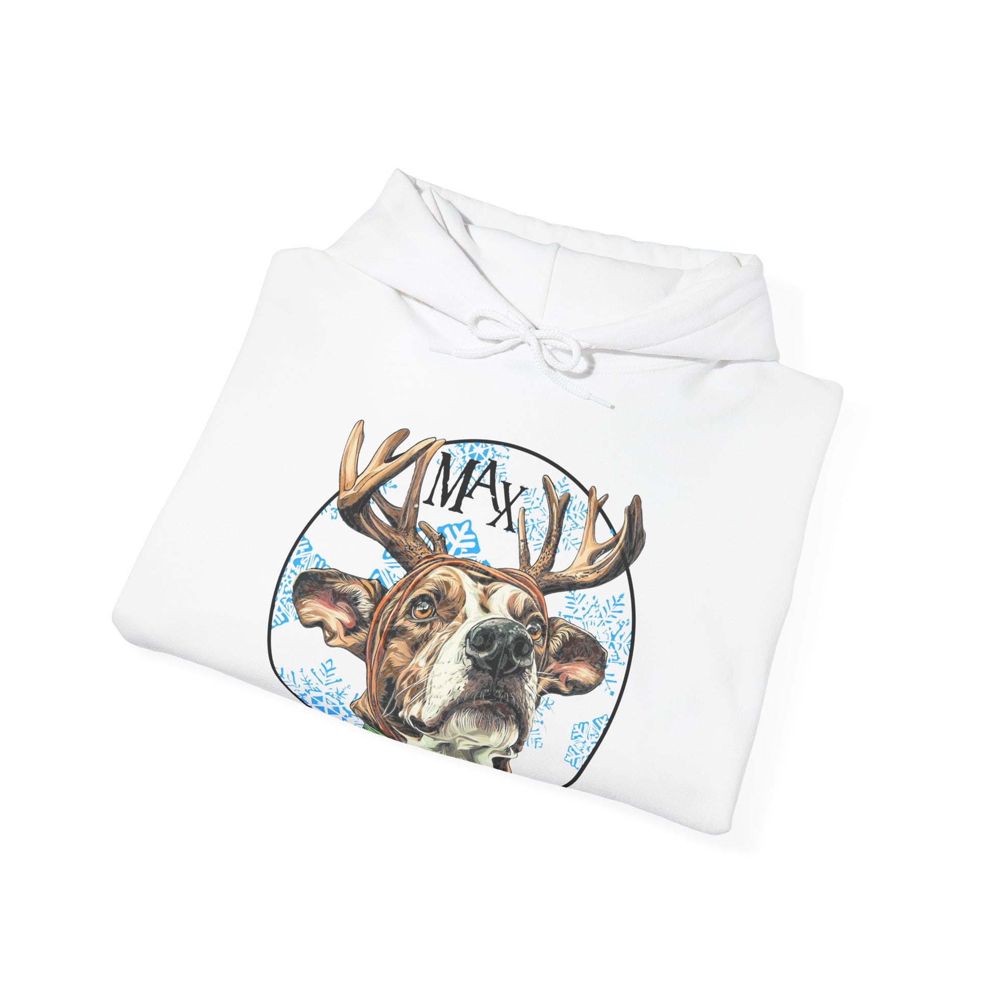 Max from the Grinch super soft hoodie that is perfect for staying cozy during the holidays. This hoodie features spacious pockets, a drawstring hood, and is made with a medium-heavy fabric for warmth and comfort. It is relevant to fans of the Grinch and those looking for a festive, comfortable hoodie for the winter season.