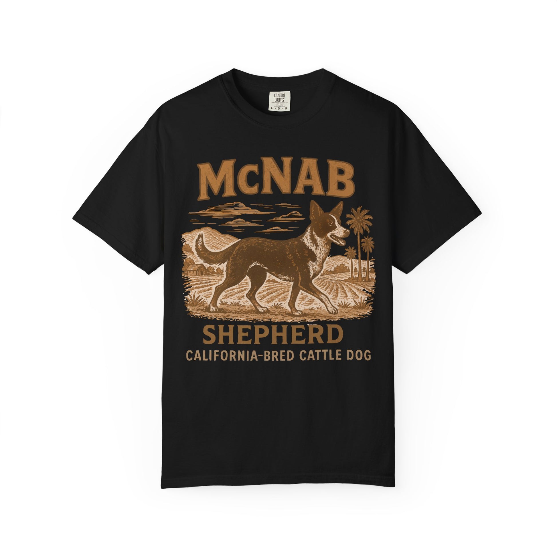 Born on the rugged California range, the McNab Shepherd is built for one thing—getting the job done. Quick on their feet, sharp between the ears, and loyal to the bone, these cowdogs glide across the pasture like a shadow on a mission. This design captures that same hard-working spirit with hand-drawn grit, bold ranch lettering, and a true Western feel.