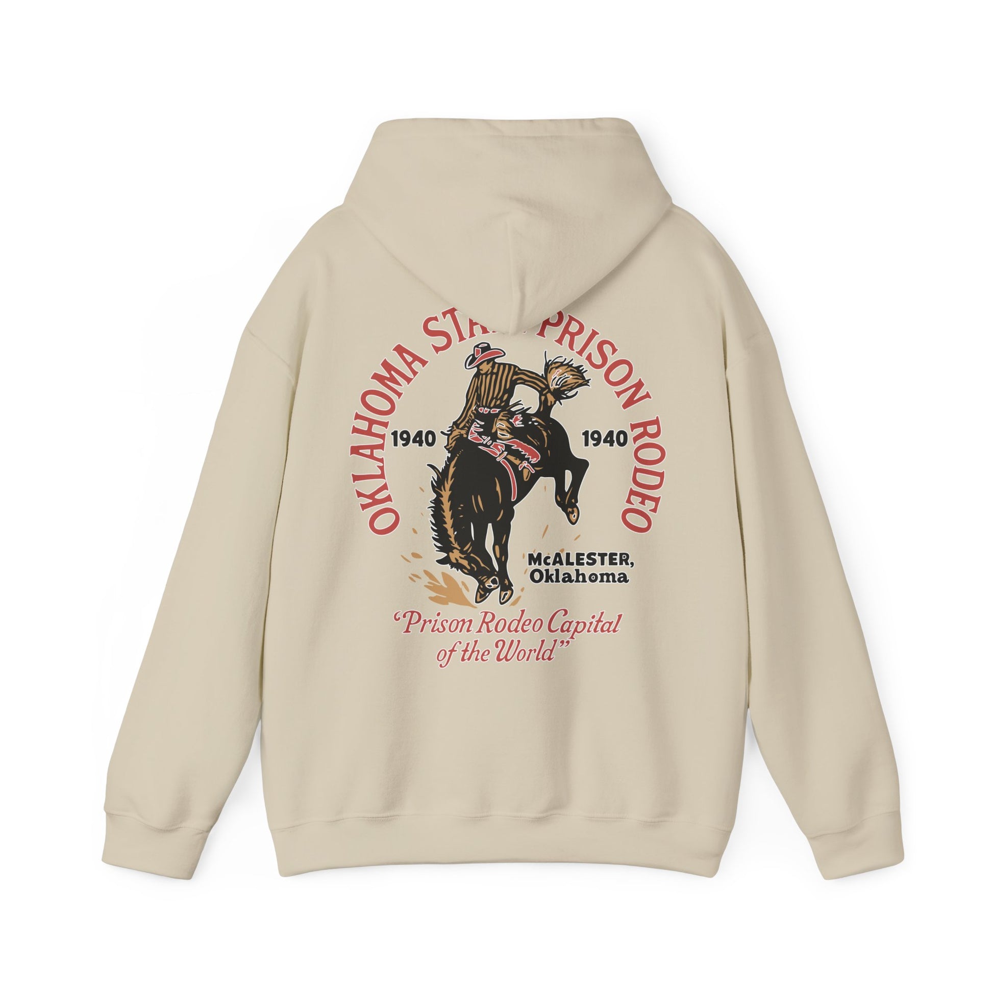 Vintage Rodeo Hoodie with 1940s Prison Rodeo Poster Design