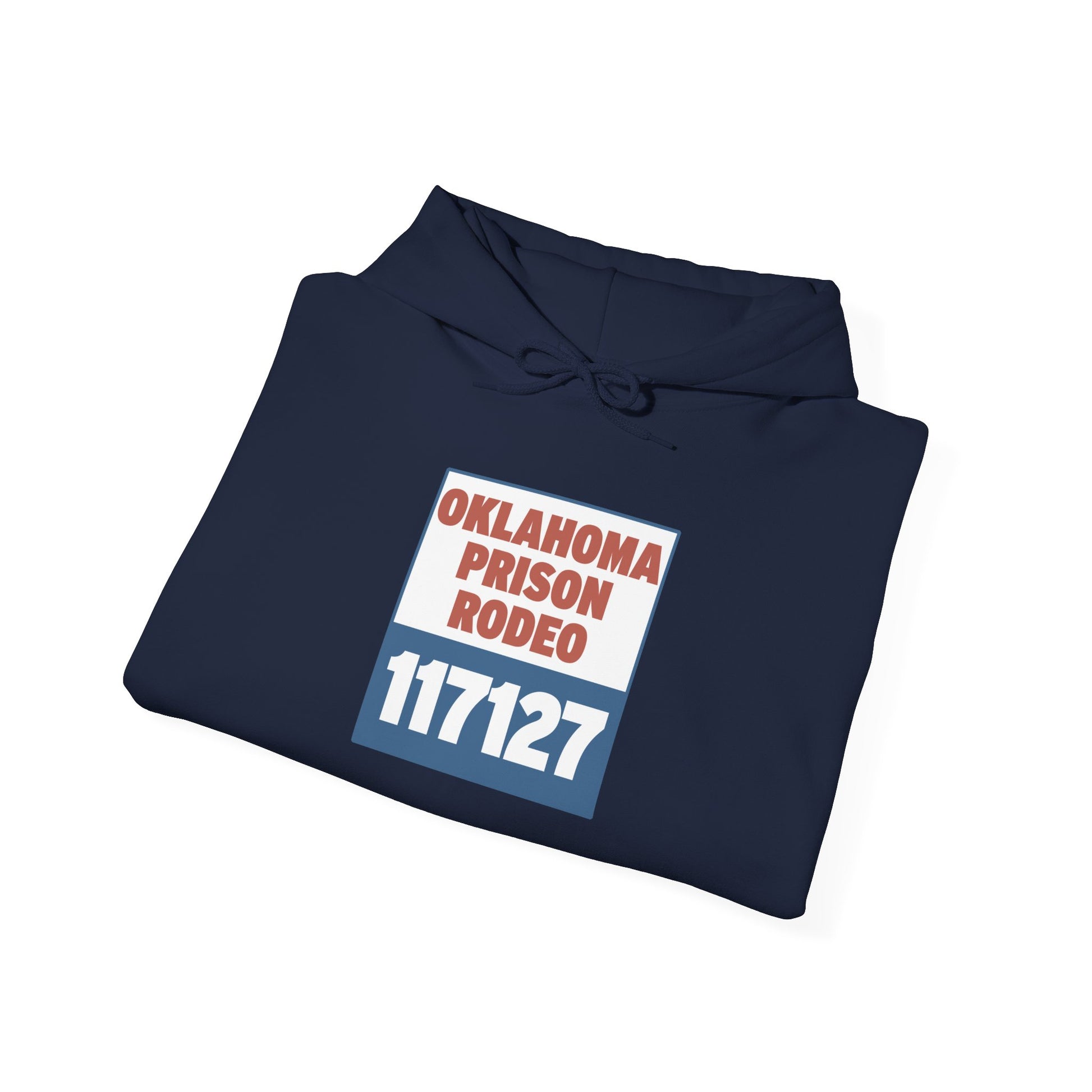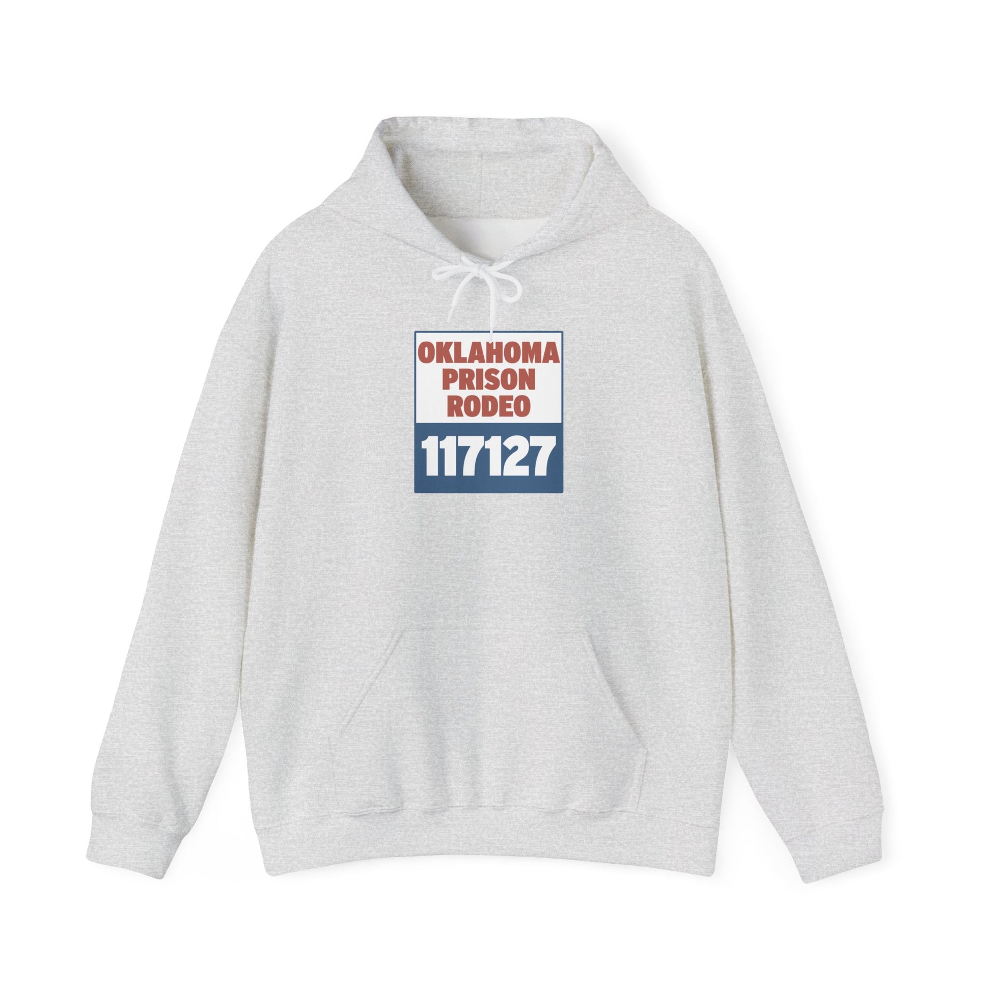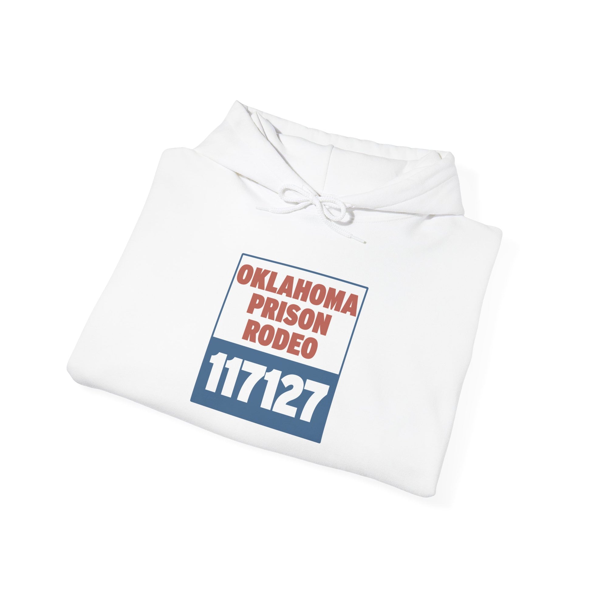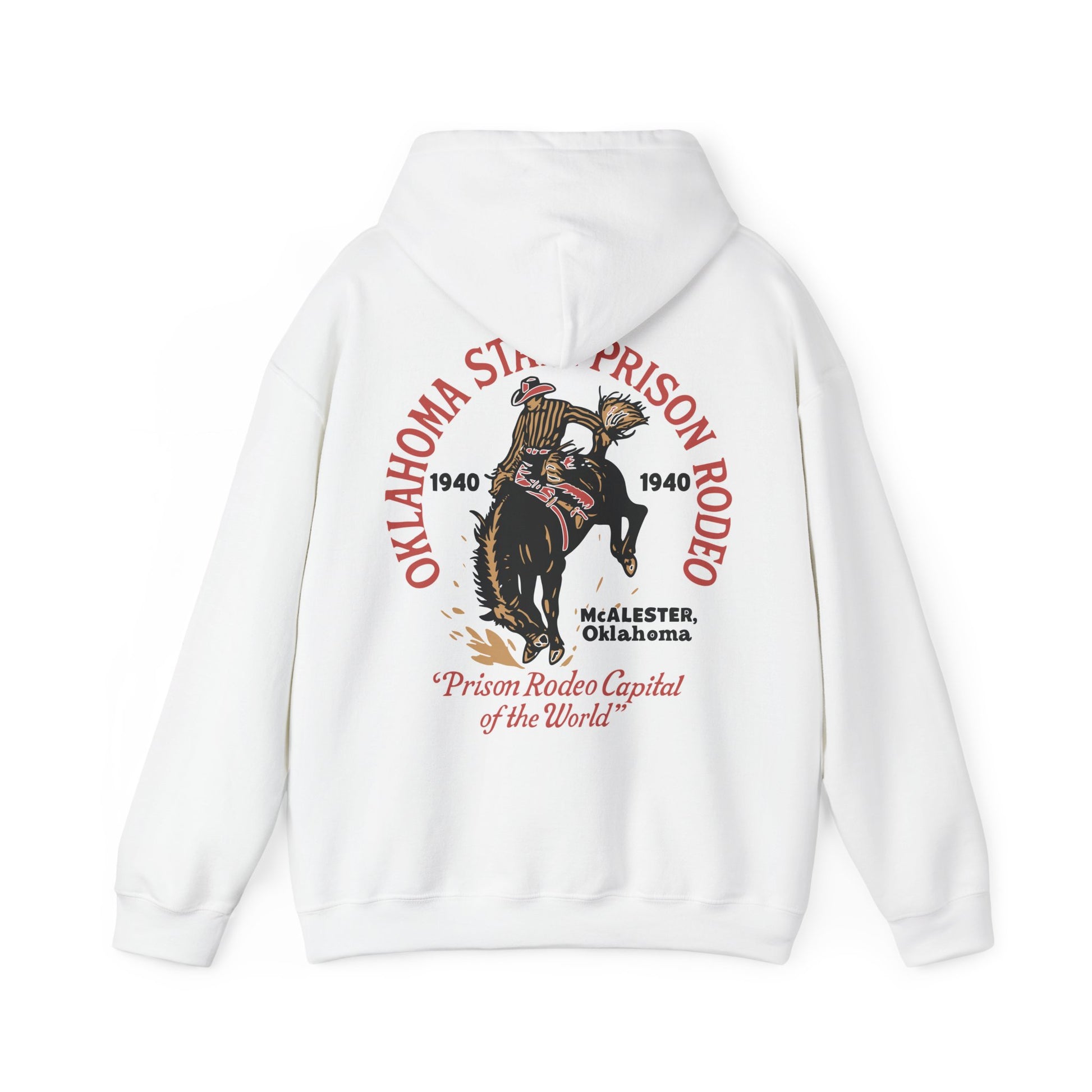 Revive the legend of the Oklahoma State Prison Rodeo with this vintage 1940s rodeo-poster style Hoodie. Bold retro print on soft cotton with a distressed ink look. Perfect for those who believe in second chances, bad ideas, and a good ride. Ideal for rodeo enthusiasts and those who appreciate vintage styles. Relevant for rodeo season, western-themed parties, and cowboy celebrations.