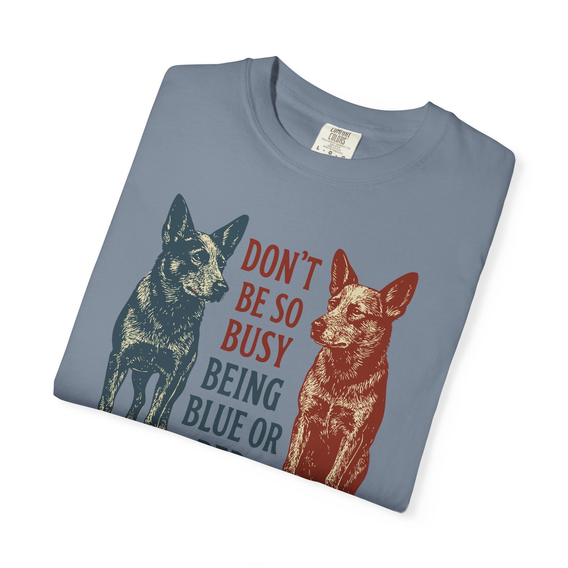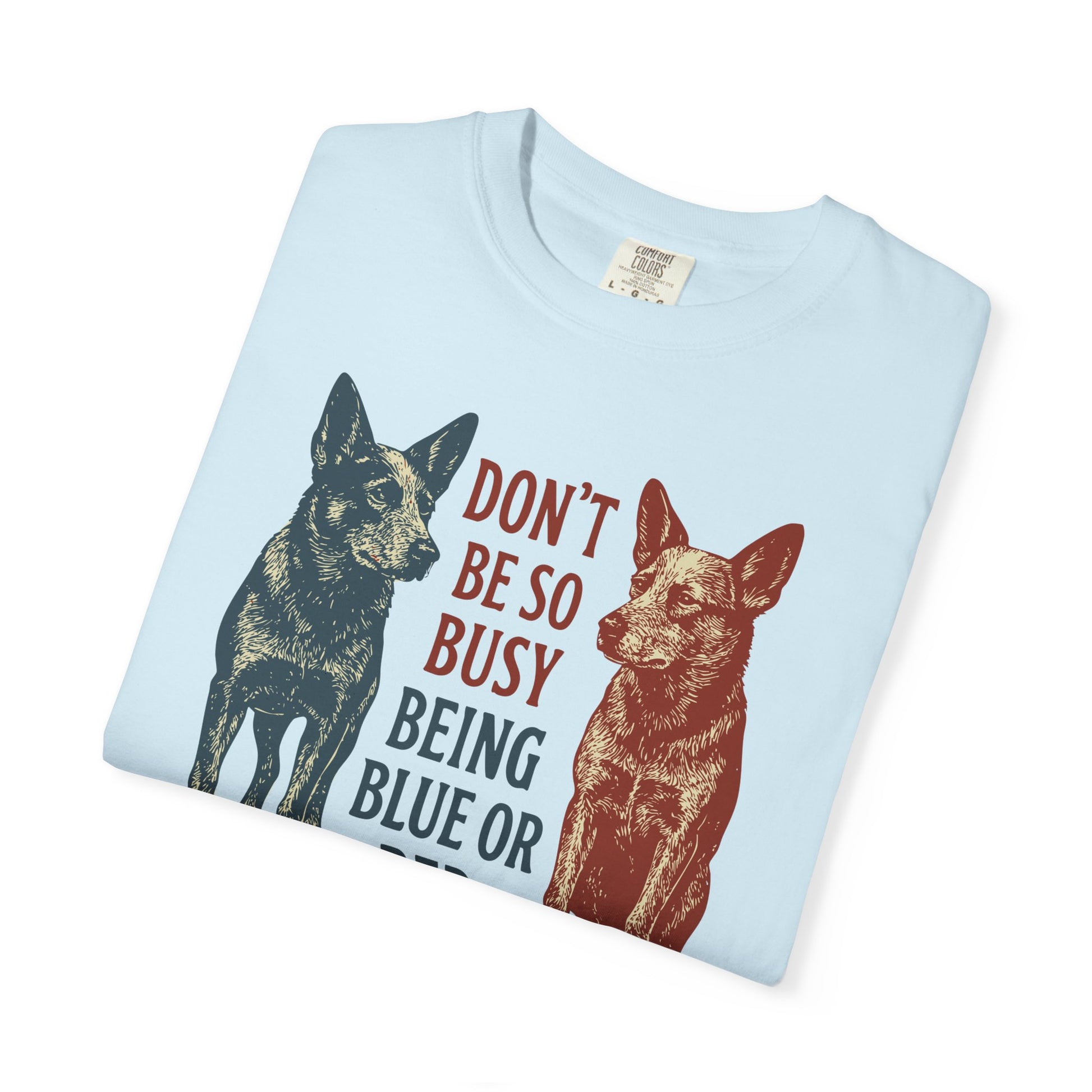 In a world where everything’s red or blue, this one reminds folks to keep a little heart in the mix. Two heelers, standing proud on opposite sides of the fence, but both cut from the same loyal cloth. A nod to unity, decency, and good ol’ country sense—because being kind never goes out of style.