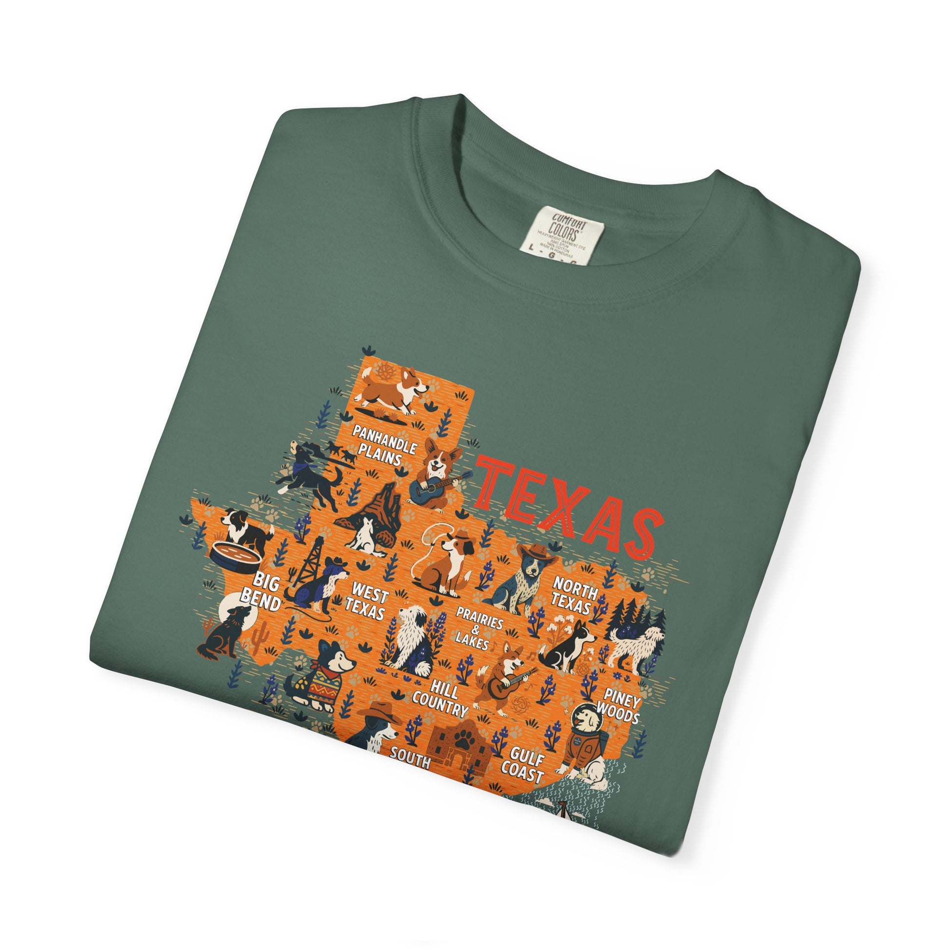 Saddle up and roam the Lone Star State with this playful Texas Cowdog Country Map Tee — a roundup of every region from the Panhandle Plains to the Gulf Coast, each one guarded by its own loyal cowdog. From bluebonnet-sniffin’ heelers to pine-forest hounds, this design captures the heart, humor, and hard-workin’ charm that makes Texas feel like home.
