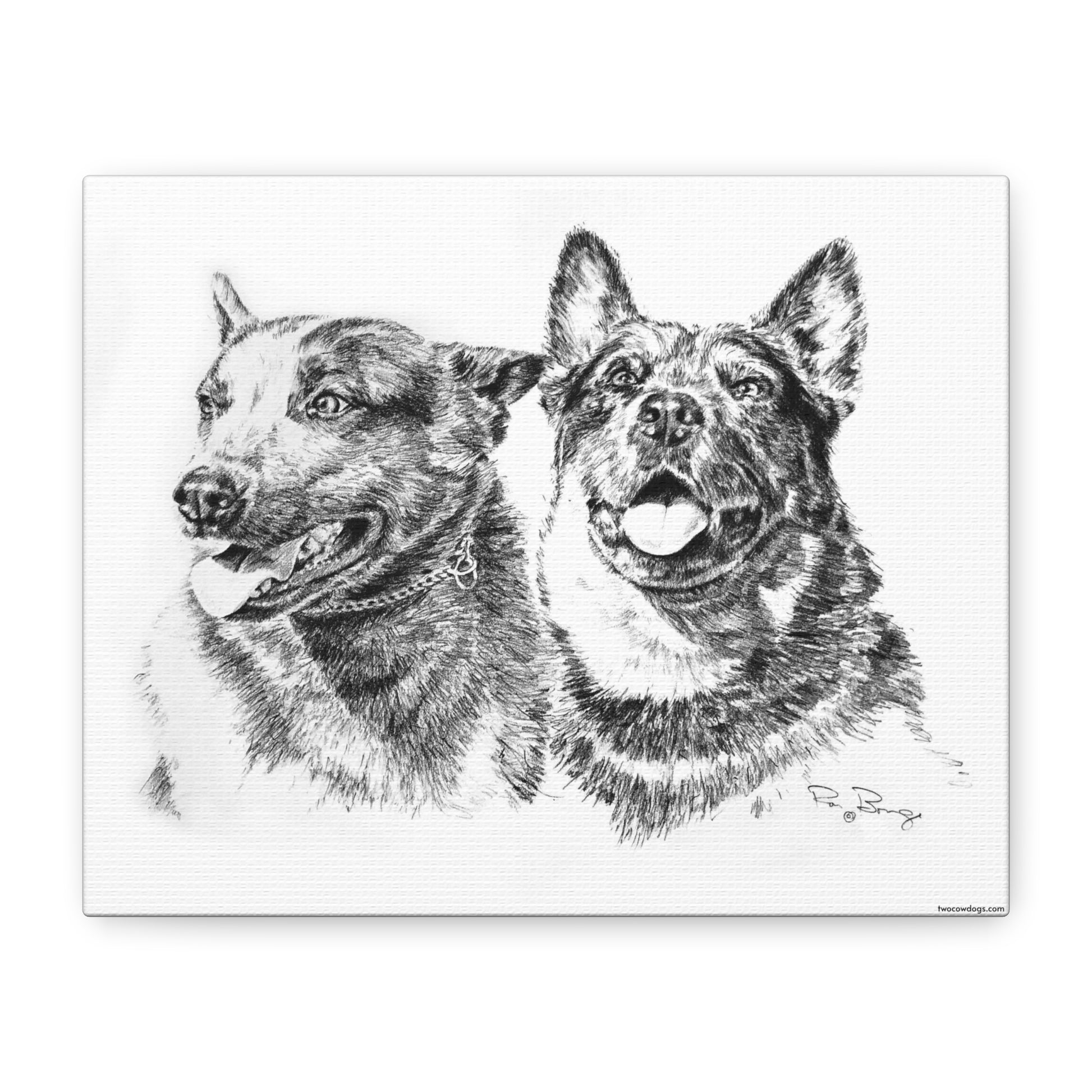 Two Cowdogs Stretched Canvas