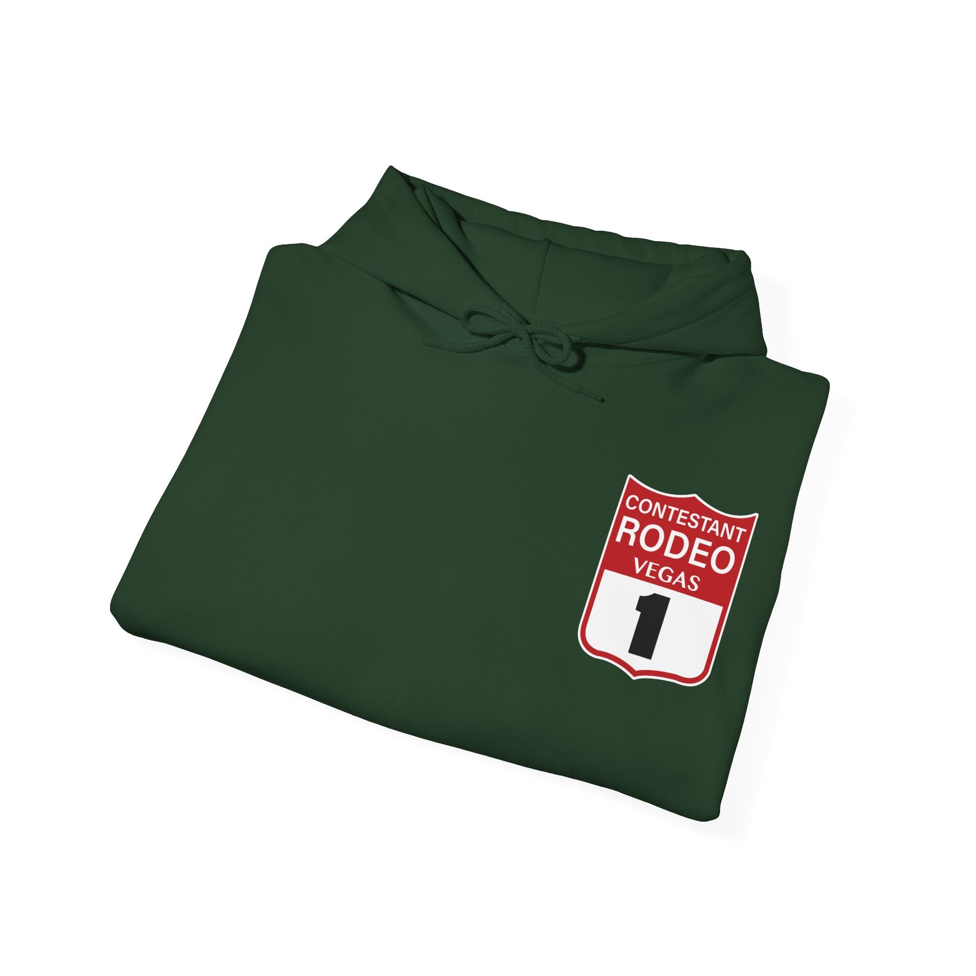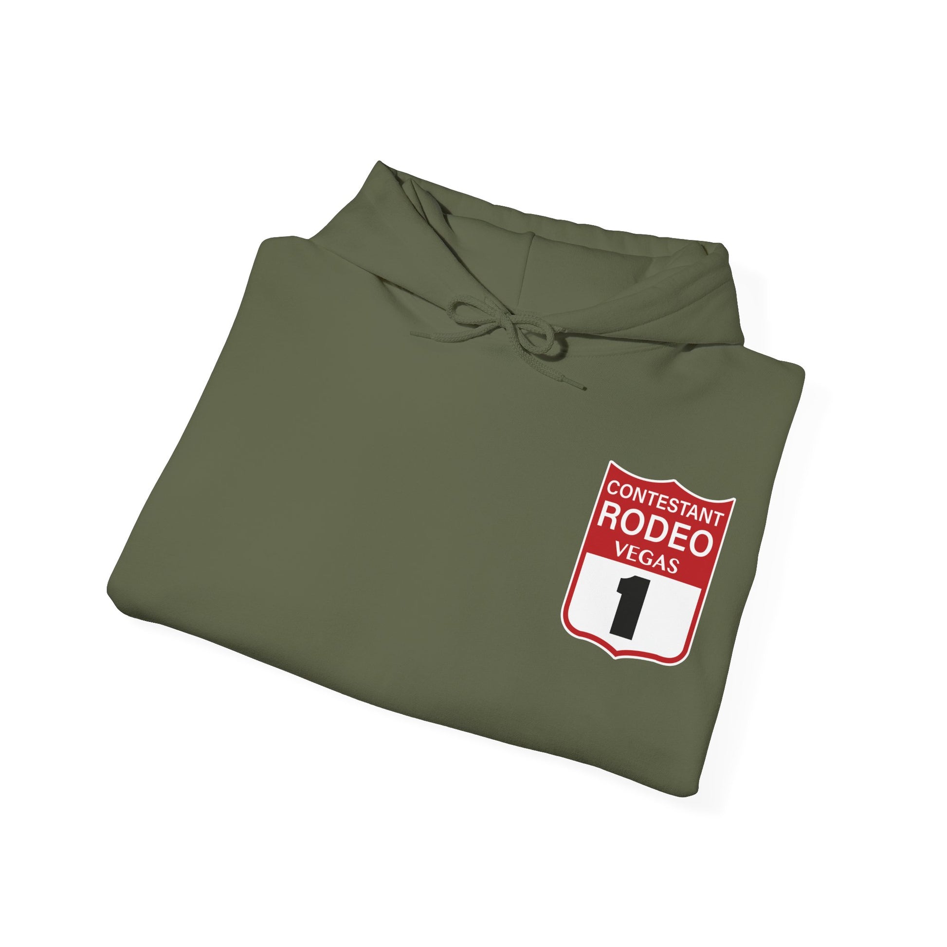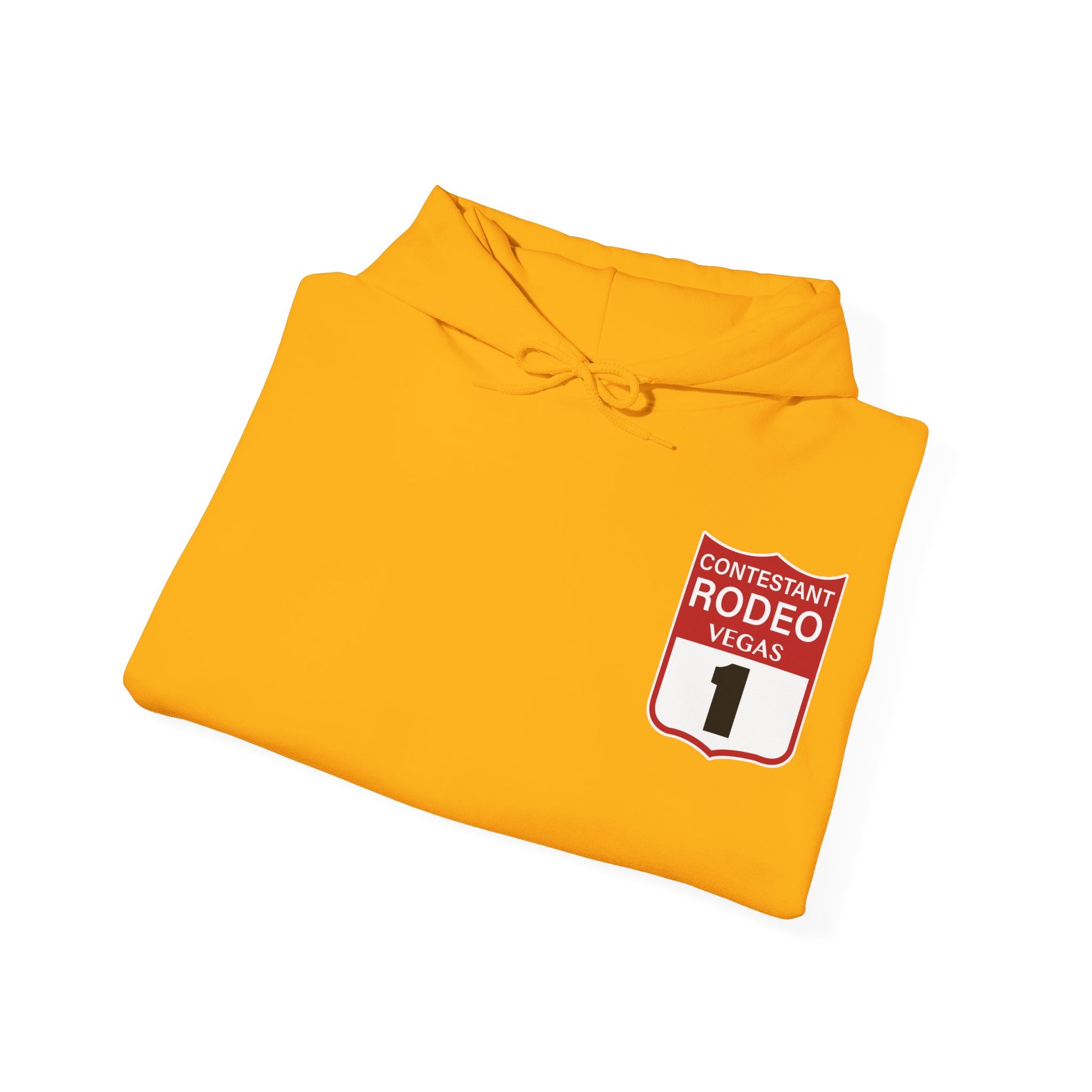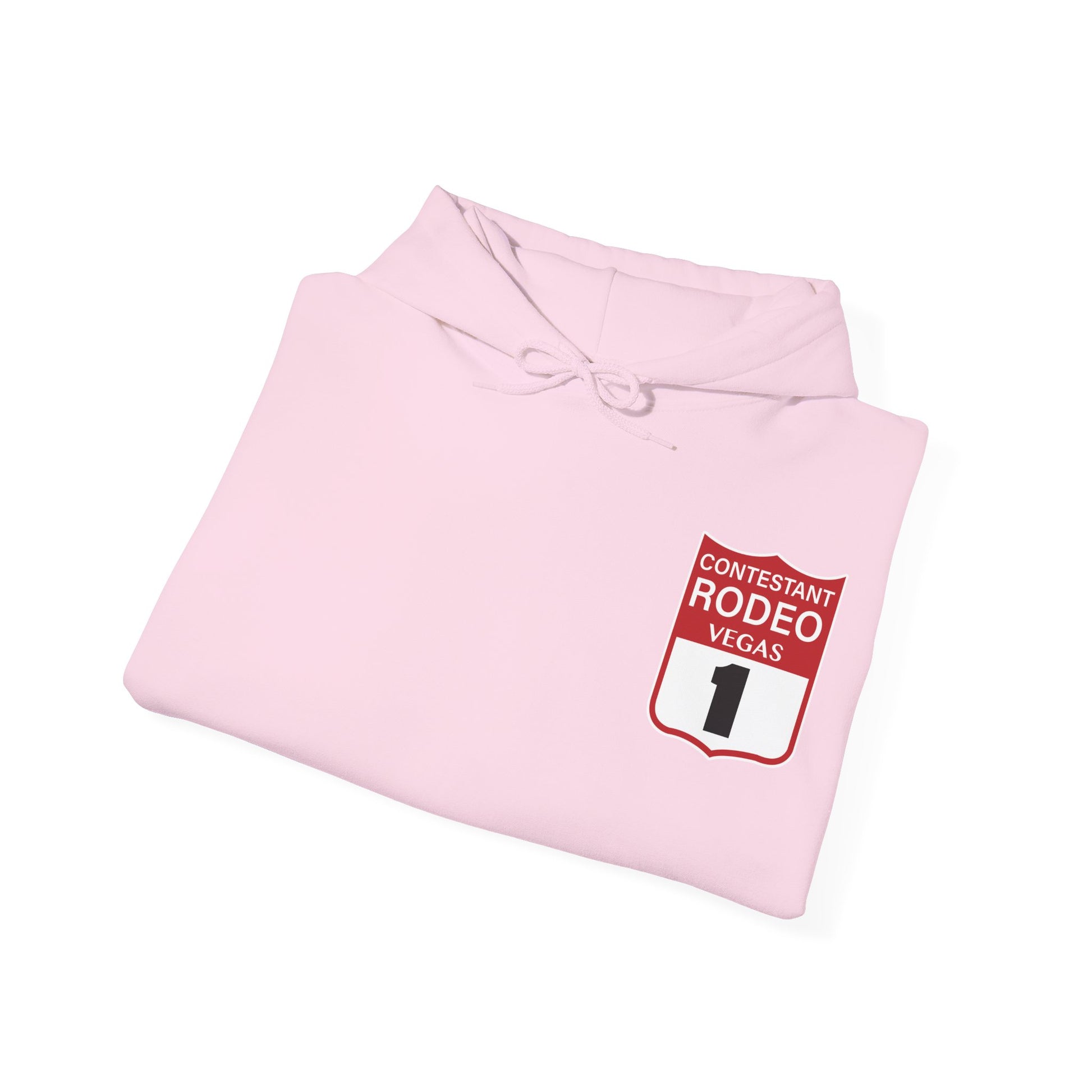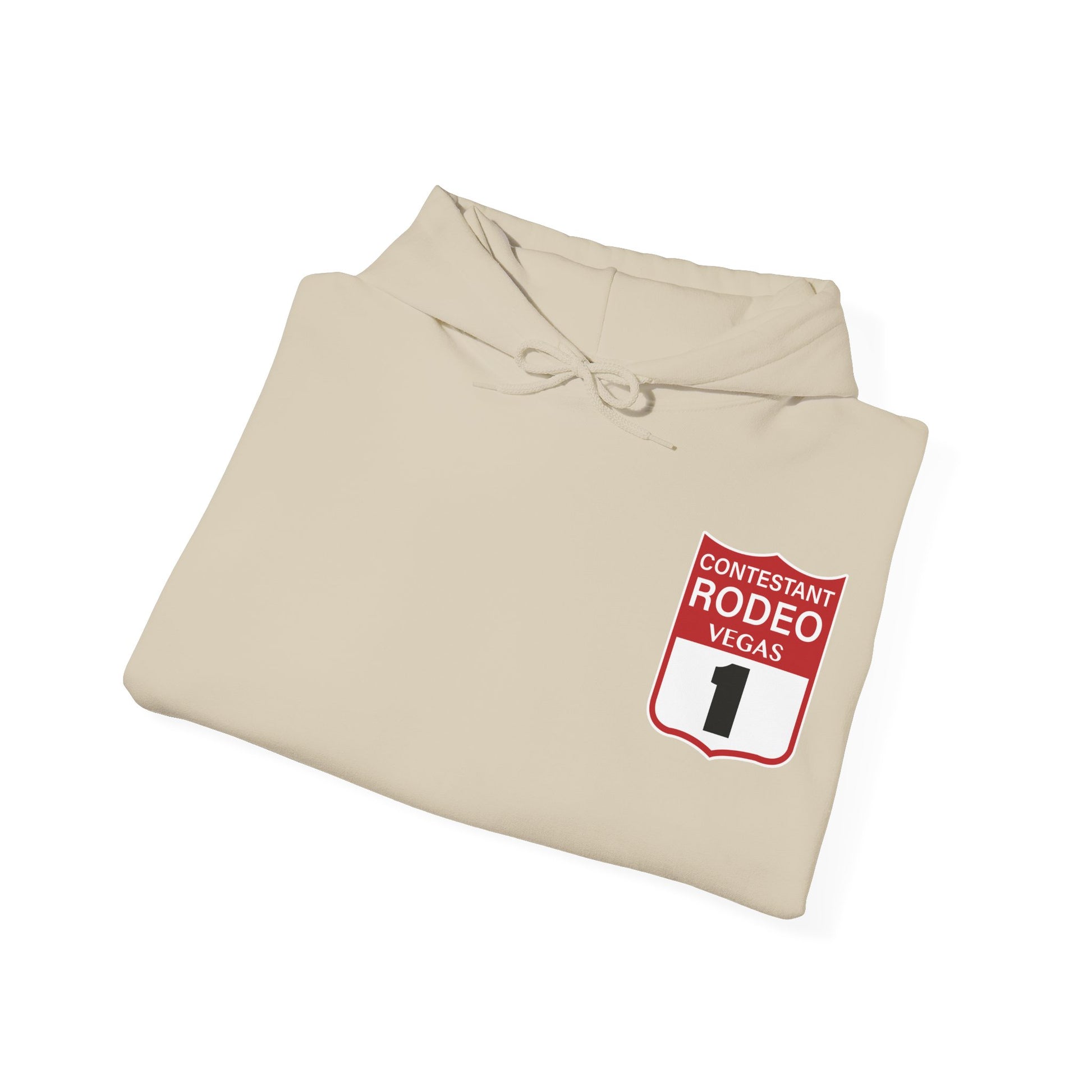 Introducing the Vegas Rodeo Heavy-Blend Hooded Sweatshirt, the perfect blend of quality and comfort. Featuring a rodeo backnumber on the front and original artwork printed on the back. This unisex heavy blend hooded sweatshirt is relaxation itself. Made with a thick blend of cotton and polyester, it feels plush, soft and warm, a perfect choice for any cold day. In the front, the spacious kangaroo pocket adds daily practicality while the hood's drawstring is the same color as the base sweater for extra style points.